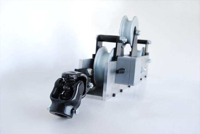 This Running Line Tensiometer is ideal for applications involving a moving wire rope of diameter 0.5 to 1.5in and a rope tension up to 100,000 lbs. The scale rides on the rope and determines cable tension by measuring the force of small deflections from its rollers. Common applications include crane boom, cable ferry, and line tension measurement.